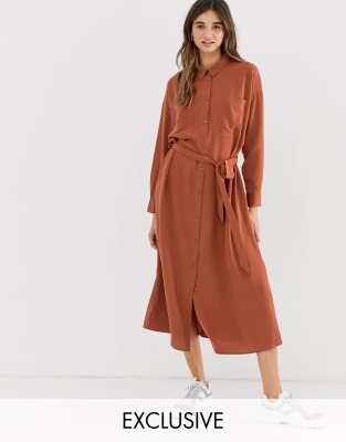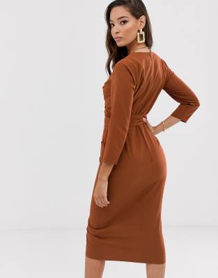 Robe rouille asos Clearance, ASOS DESIGN - Robe mi-longue croisée boutonnée - Rouille | ASOS Clearance