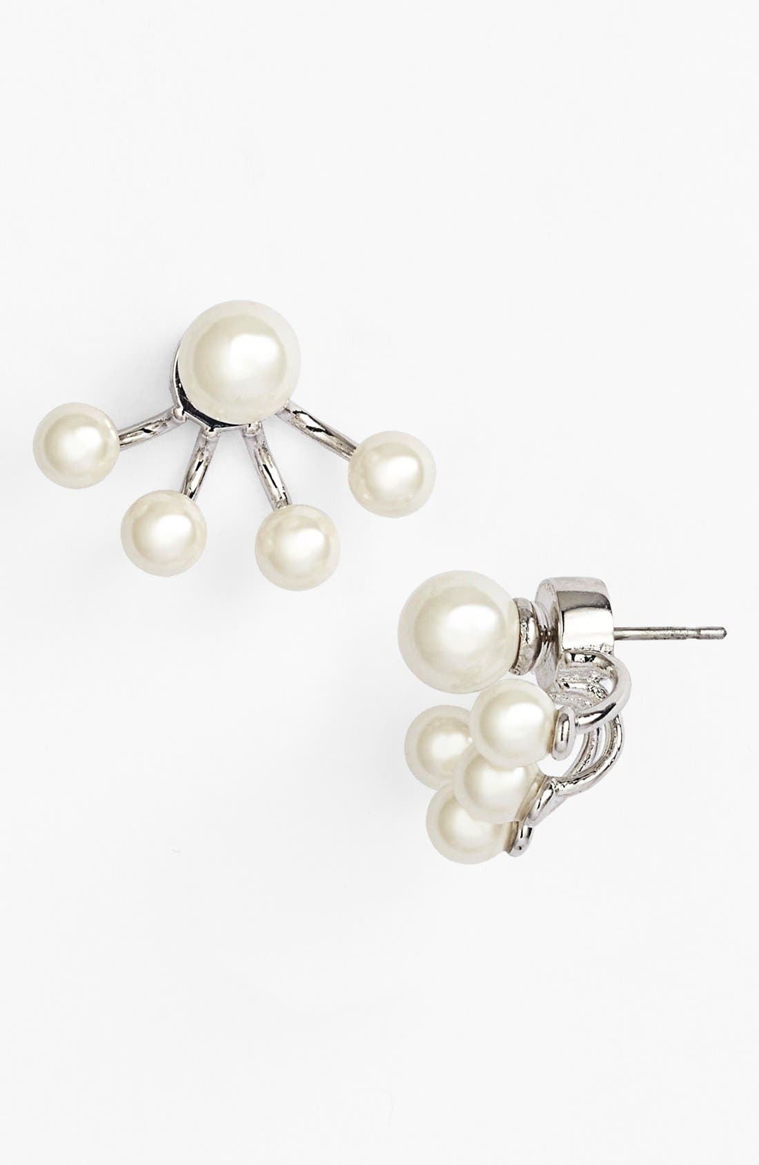 Pearl ear jacket Clearance, Pearl Ear Jacket Sterling Silver Pearl Front Back Earrings Pearl Jacket Gold Ear Jacket Silver Clearance