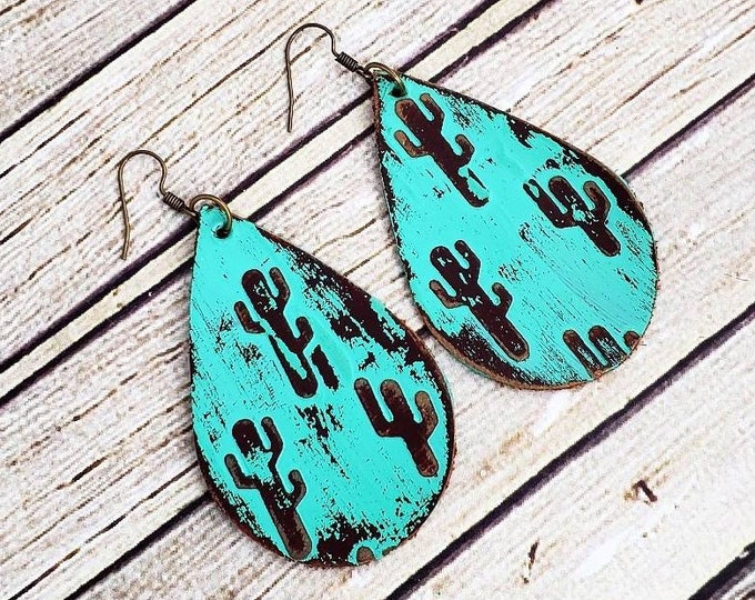 - Leather cactus earrings free shipping