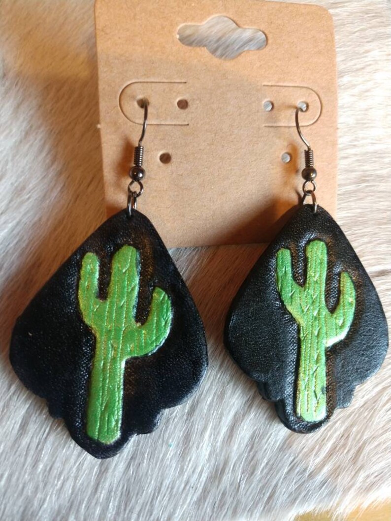 Leather cactus earrings Clearance, Leather Tooled Cactus Earrings | Jewerly handmade, Leather art, Hand tooled leather Clearance
