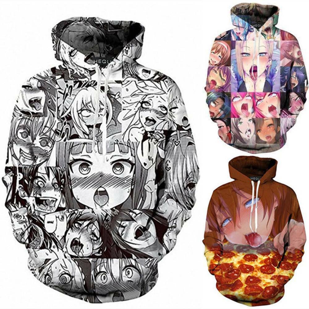 Anime o face hoodie Clearance, Ahegao O-FACE Anime 3D Print Mens Clearance