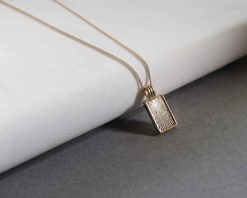 Rectangle charm necklace Clearance, 14k Gold Filled Rectangle Charm Necklace Gold Sunburst Charm | Etsy Clearance