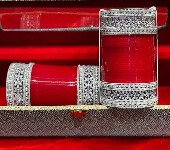 Red white chuda Clearance, Buy Punjabi CHUDA,DULHAN CHUDI Set,BUNGDI CHUDA, RED White CHURA, Bridal Bangles Set,Daimond Clearance