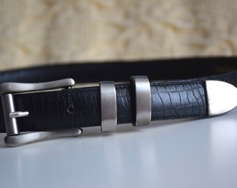 - Mens black belt with silver tip sale
