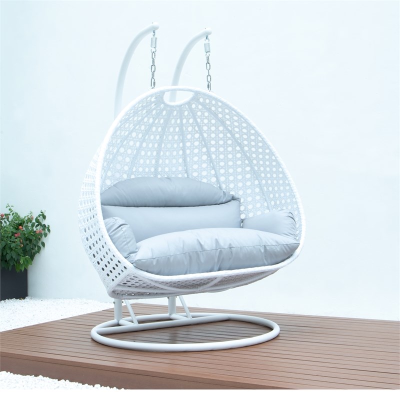 White rattan swing chair Clearance, LeisureMod Outdoor White Wicker Hanging Double Egg Swing Chair in Light Gray | Homesquare Clearance