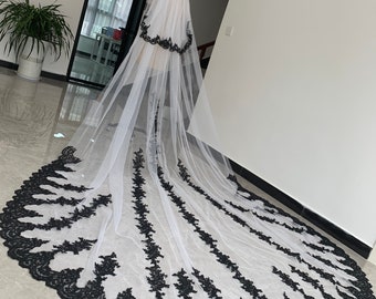 - White veil with black lace sale