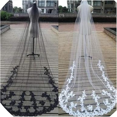 - Cheap White veil with black lace
