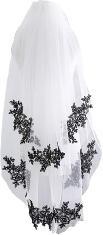 - White veil with black lace free shipping