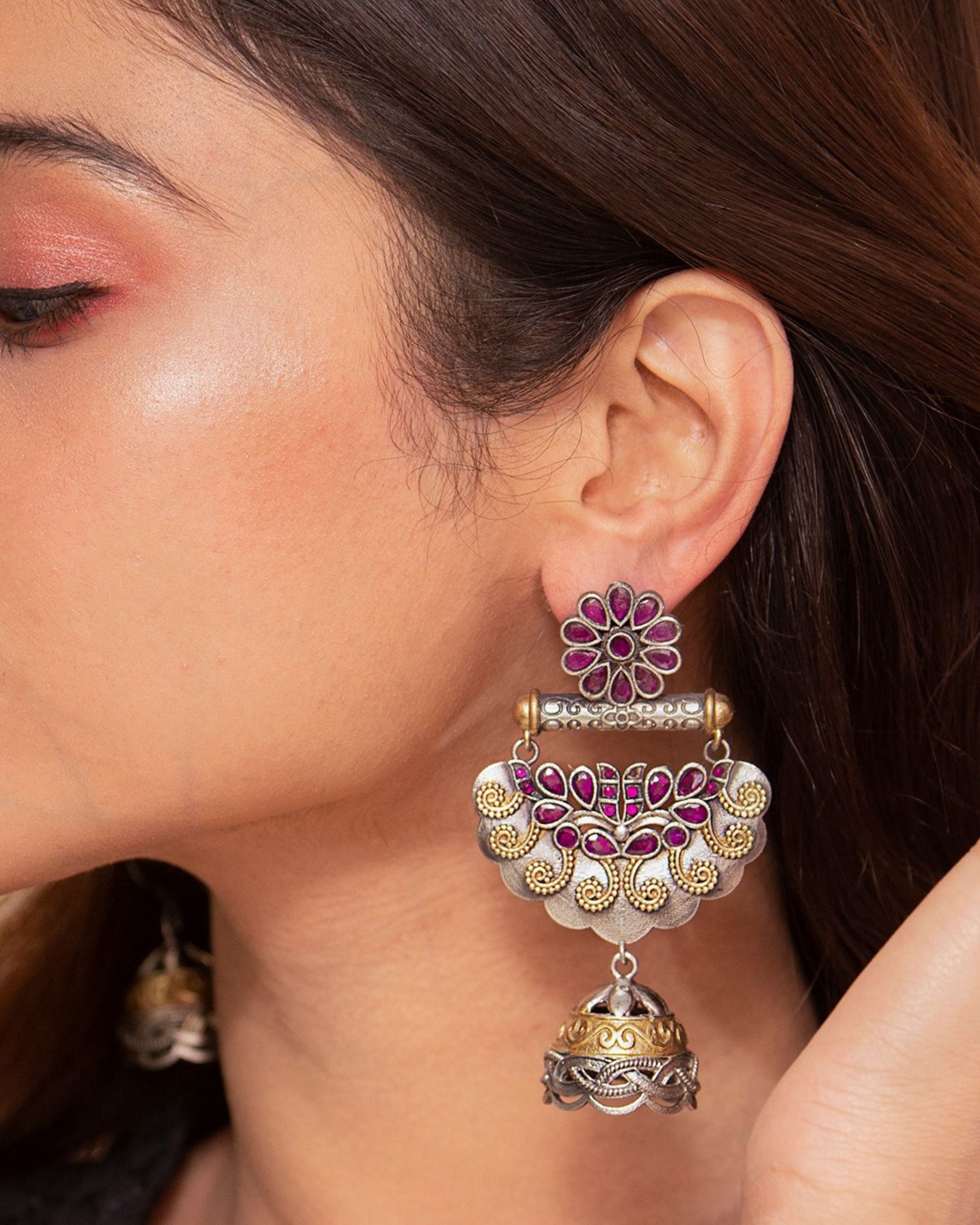 Stone jhumka design Clearance, Dual toned floral stone jhumka by Studio B 40 | The Secret Label Clearance