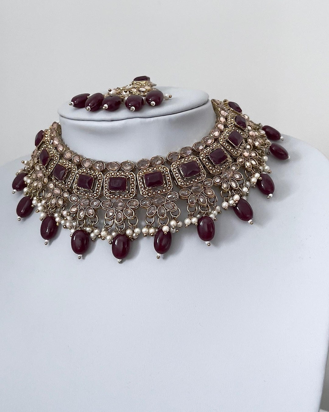 Maroon choker set Clearance, Copper Maroon Choker Necklace Set at Rs 85/set in Mumbai | ID: 2850466665648 Clearance