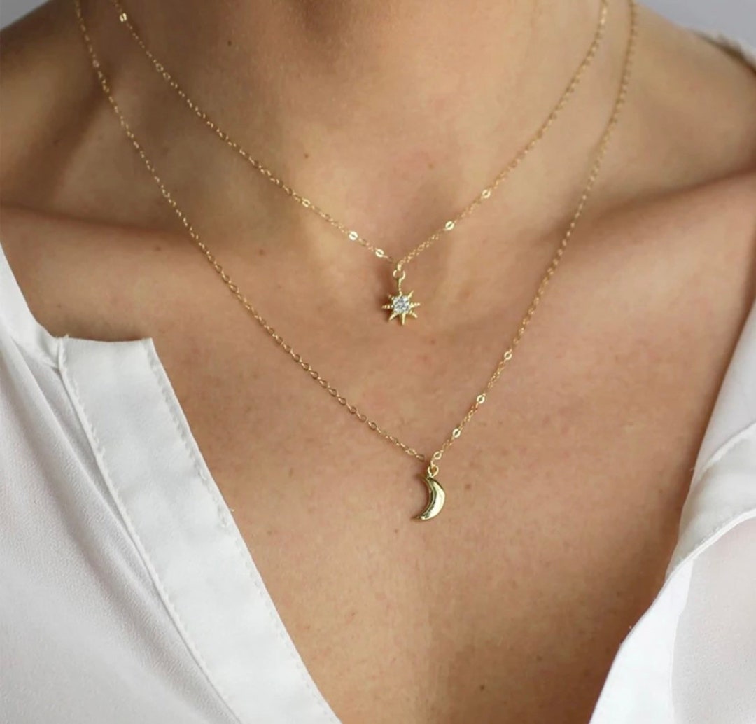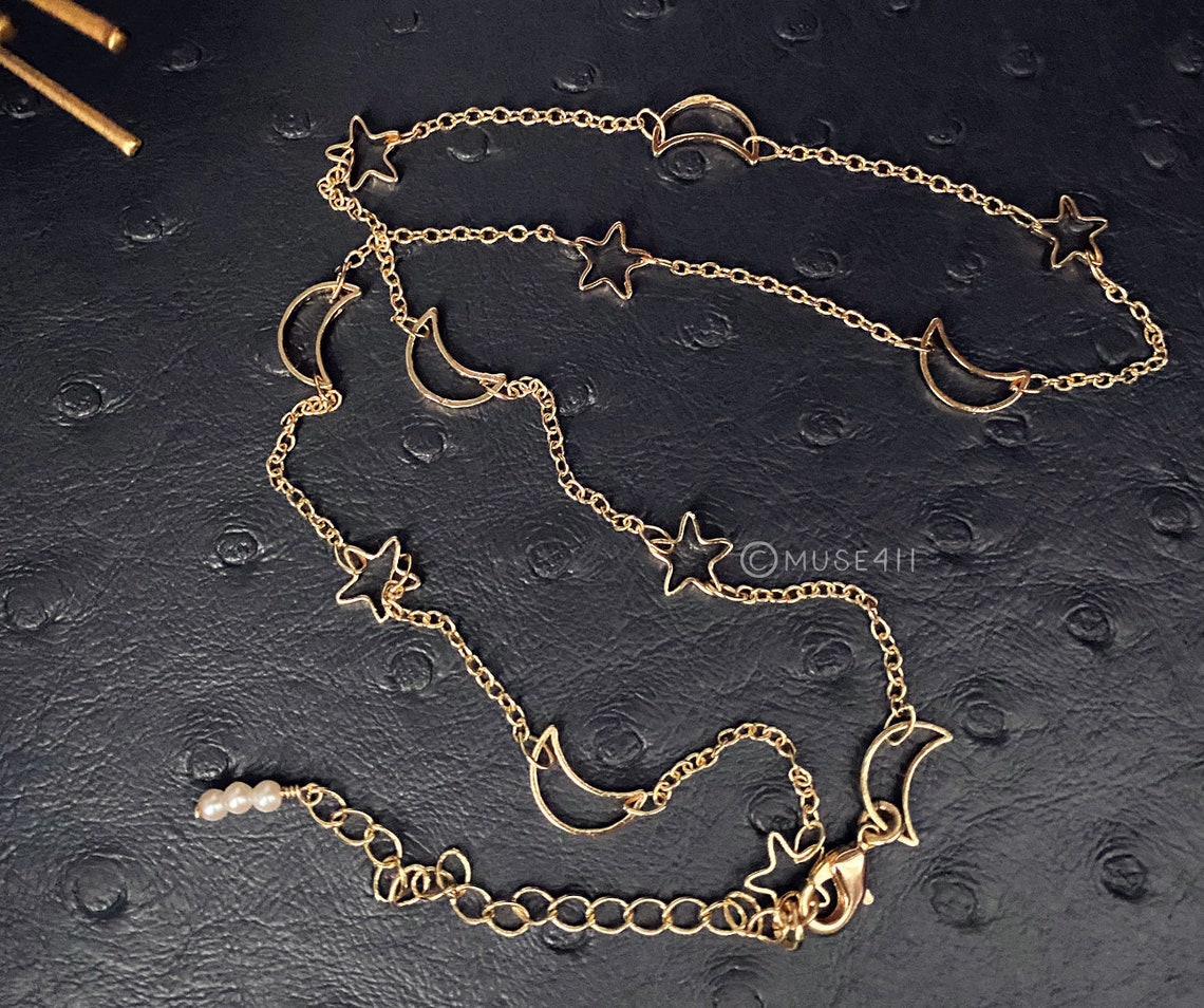 Moon and star chain Clearance, Half Moon and Star Chain Necklace Crescent Star Charm - Etsy Clearance