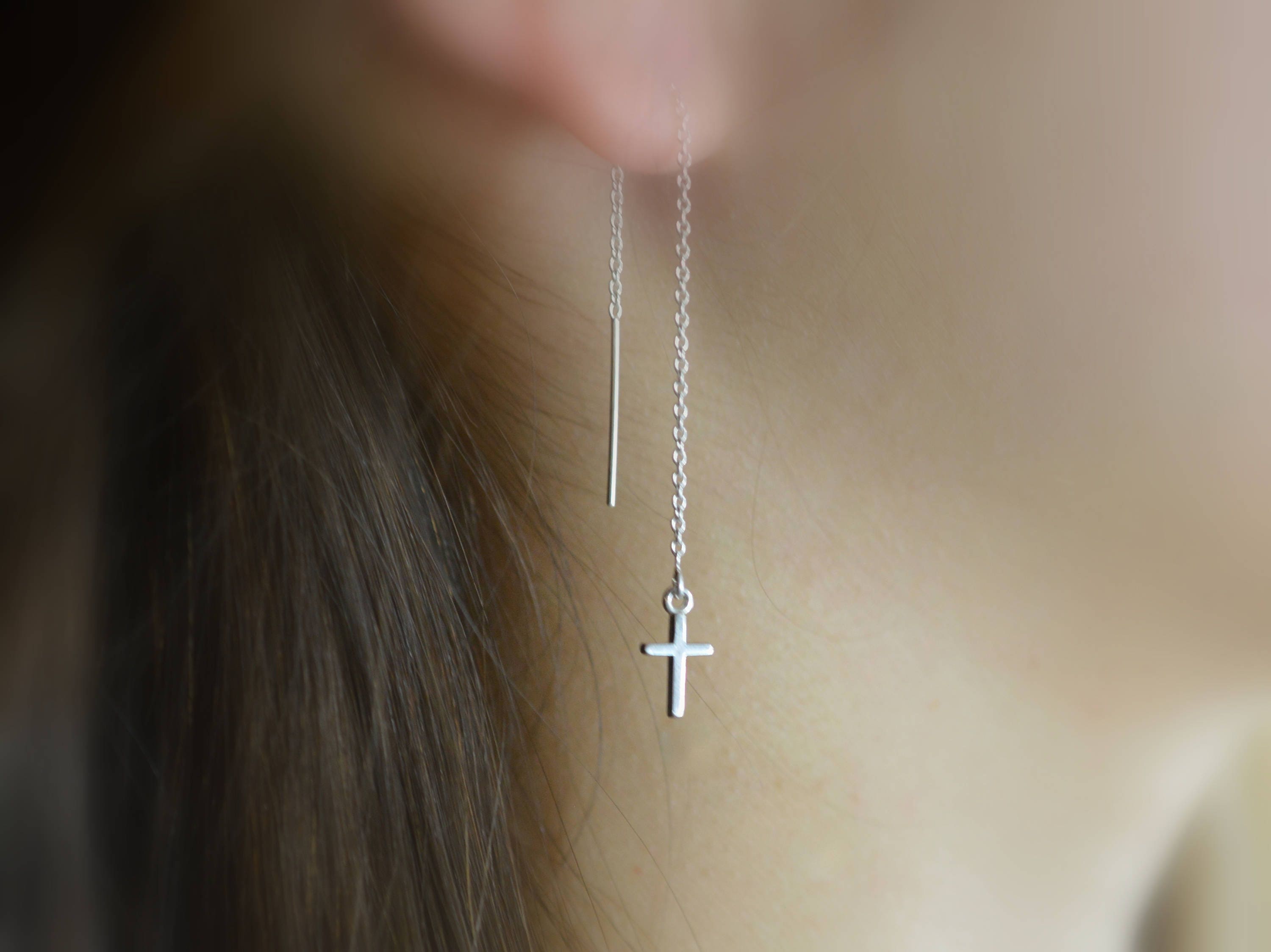 - Shopping Cross threader earrings
