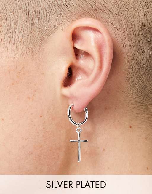 Silver earrings asos Clearance, ASOS DESIGN hoop earrings with chunky cross in real silver plate | ASOS Clearance