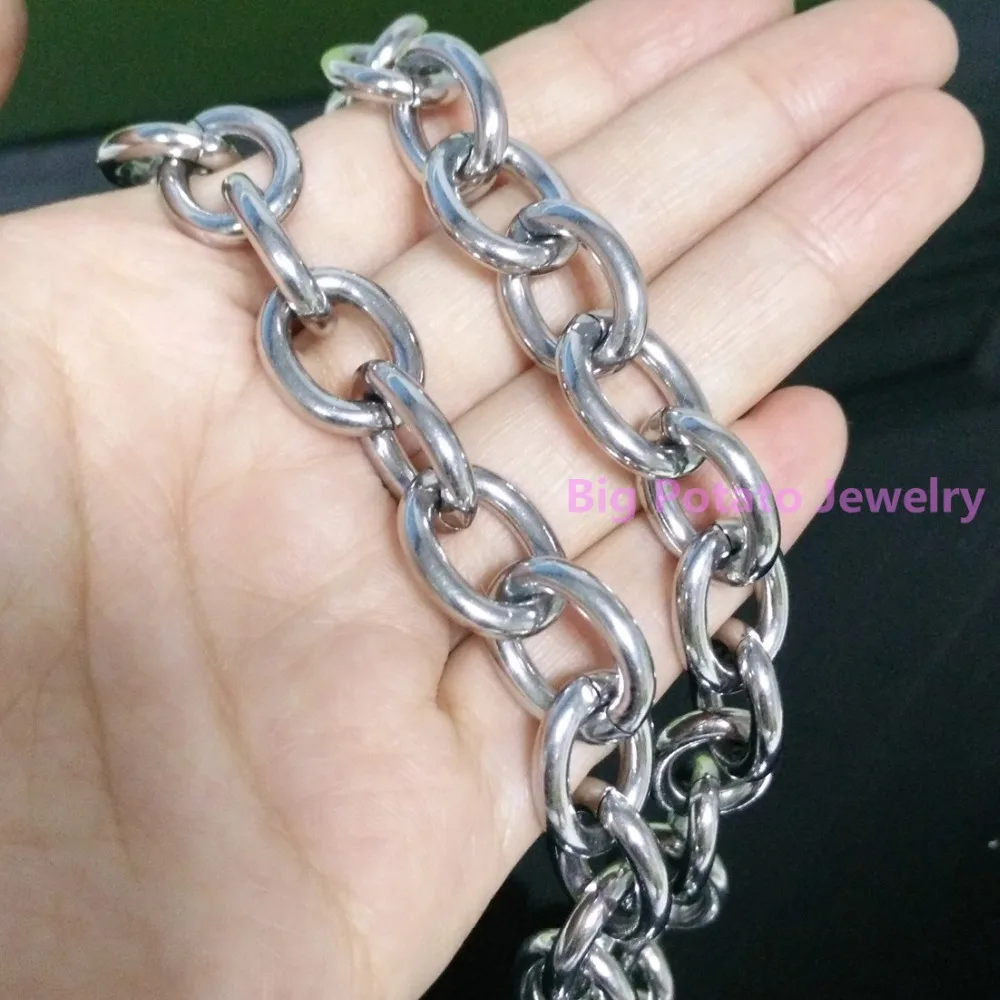 Custom silver chain Clearance, 7-40inch Custom Size 13mm Wide Silver Color Rolo Chian 316l Stainless Steel Necklace Chain For Clearance