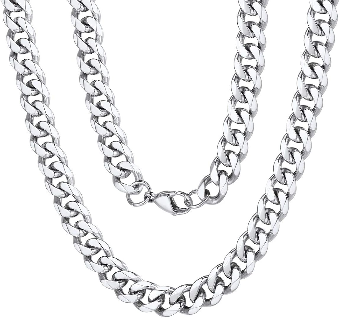 Mens silver 22 inch chain Clearance, ChainsPro Men's Chain 22 Inch Boy Stainless Steel Necklace 55CM Cuban Link Chain 9MM Wide Silver Clearance