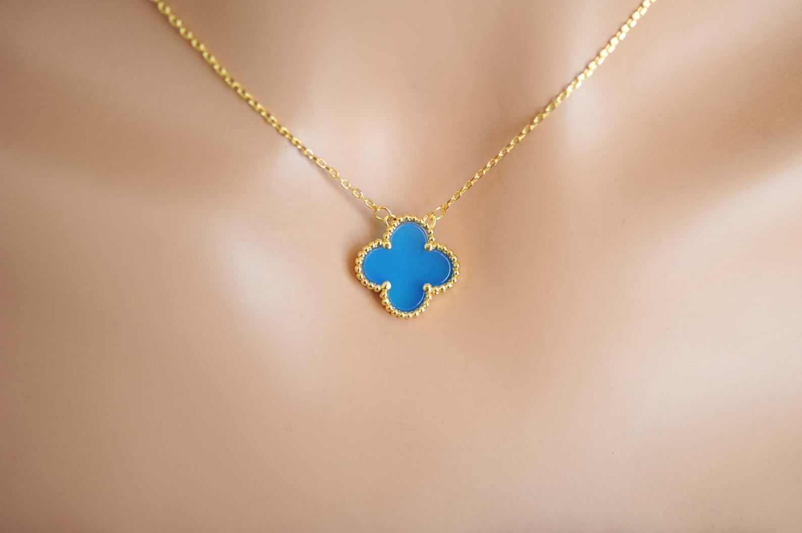 Clover necklace brand Clearance, Clover Necklace Blue Agate Four Leaf Pendant 18k Gold 925s | Etsy Clearance