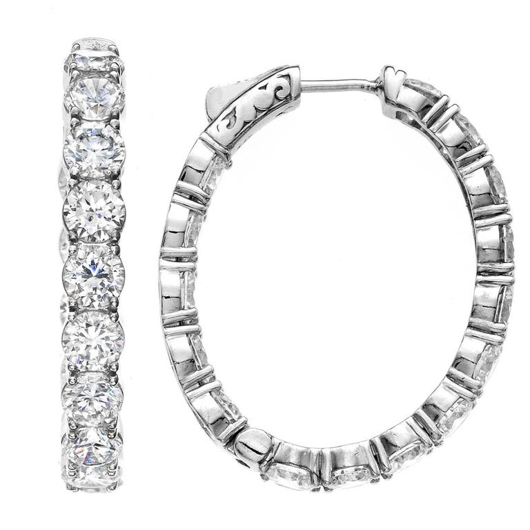 Oval diamond hoops Clearance, Diamond Inside Out Push-Lock Oval Hoop Earrings in White Gold, 1.60 cttw | Borsheims Clearance