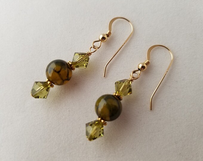 Green agate earrings Clearance, Green Agate Earrings 14k Gold Filled Ear Wires Swarovski - Etsy Clearance