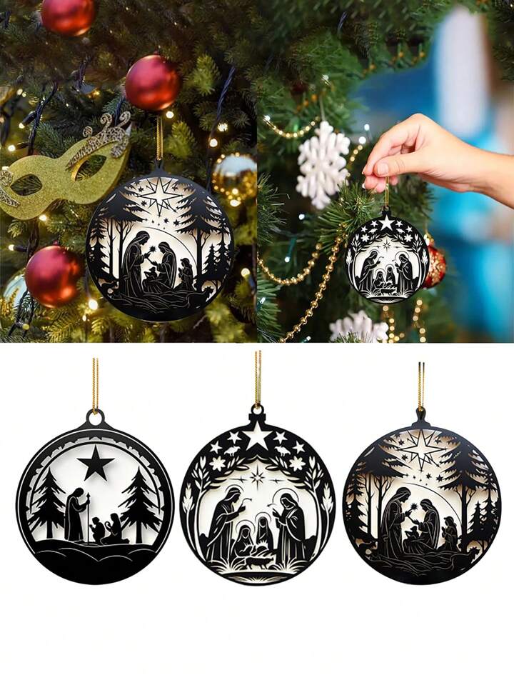 Jesus christmas tree decorations Clearance, 1pc Jesus Christ Nativity Scene u0026 Christmas Tree Decorative Hanging Ornament | SHEIN UK Clearance