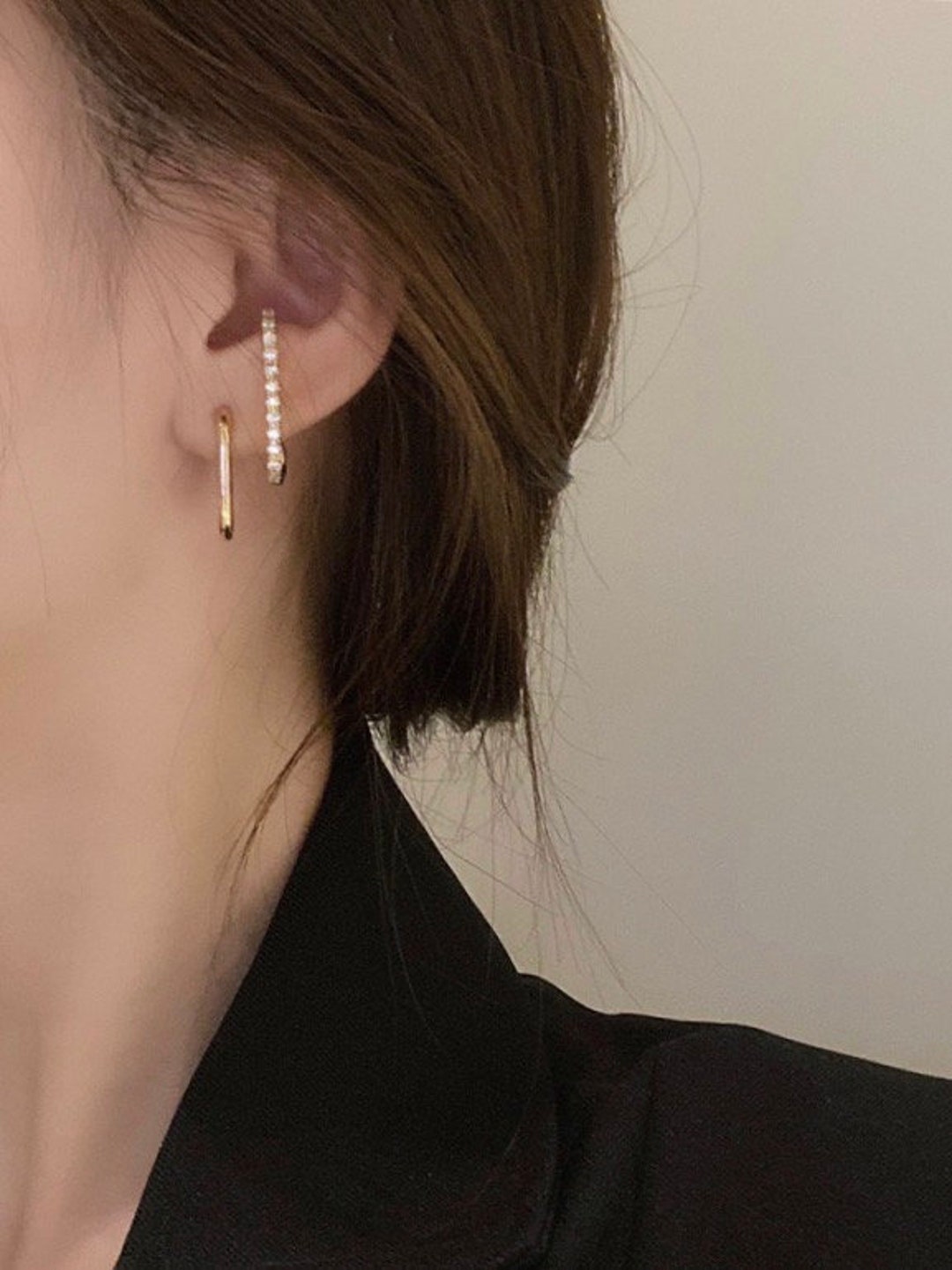 Double suspender earrings Clearance, Unique Suspender Earrings in Gold, One-piercing Suspender Earrings, Double Layer Suspender Clearance