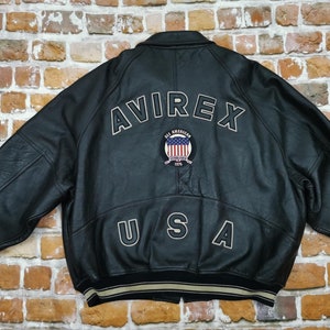 Black leather avirex jacket Clearance, Avirex Usa Varsity Leather Jacket 6XL Black Vintage Hip Hop - Etsy UK Clearance
