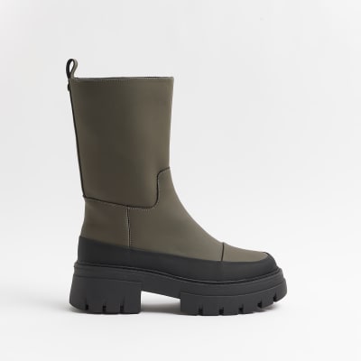 River island khaki boots Clearance, River Island wide fit drench chunky Clearance