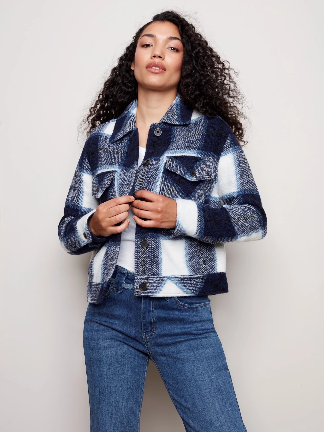 Boiled wool short jacket Clearance, C6210-174B Charlie B. Plaid Boiled Wool Short Jacket - The Leather House Clearance