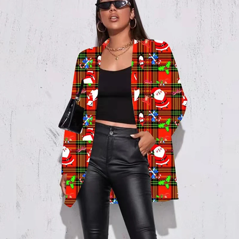 - Women's christmas plaid blazer free shipping