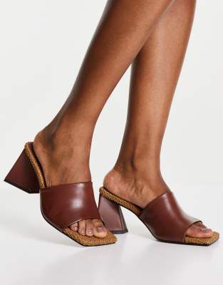Leather brown mules Clearance, ASOS DESIGN Healing premium leather mid Clearance
