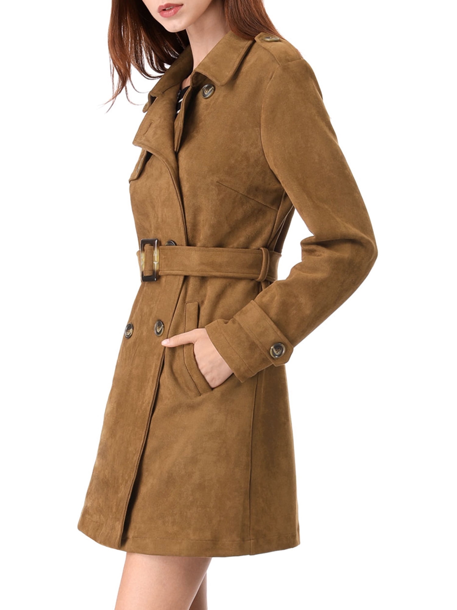 Faux suede trench coat womens Clearance, Unique Bargains Women's Faux Suede Double Breasted Trench Coat Jacket with Belt - Walmart.com Clearance