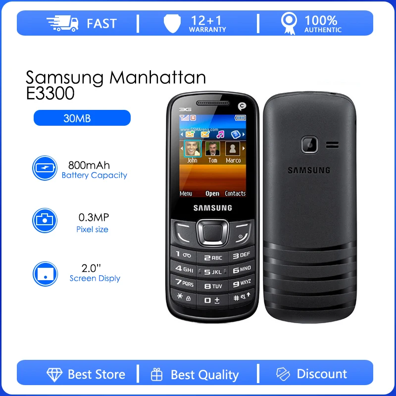 Samsung gt e3300 Clearance, Samsung Manhattan E3300 Black 30MB ROM Gsm Unlocked Phone DISPLAY 2.0-Inches (128x160) FRONT CAMERA - REAR CAMERA Single VGA STORAGE 30MB BATTERY CAPACITY 800mAh Clearance