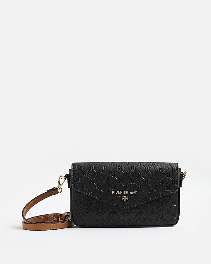 - River island embossed monogram crossbody bag in black clearance