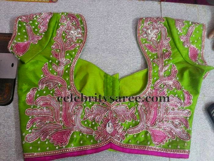 Parrot green blouse Clearance, Brocade Silk With Woven Floral Motifs Clearance