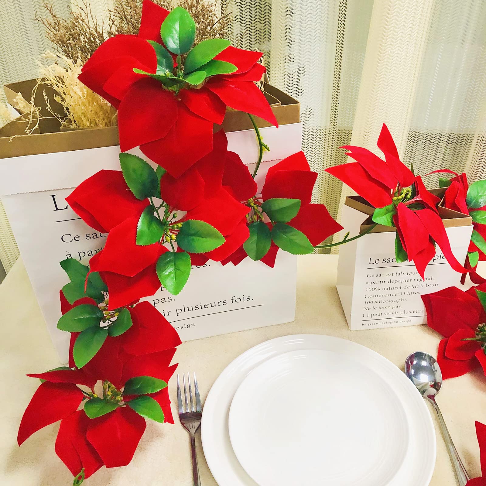 Christmas garland with red poinsettia Clearance, 4 Pack Christmas Garland Artificial Red Poinsettia Garland with Green Leaves 2m Fairy Wreath Plant Flowers Vine for Christmas Holiday Door Decoration : Amazon.co.uk: Home u0026 Kitchen Clearance
