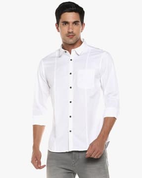 Buffalo white shirt Clearance, Buffalo Cotton Shirt with Patch Pocket For Men (White, L) Clearance