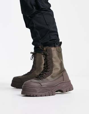Asos design lace up boots Clearance, ASOS Design Lace Up Boot on Chunky Sole in Brown Canvas Clearance