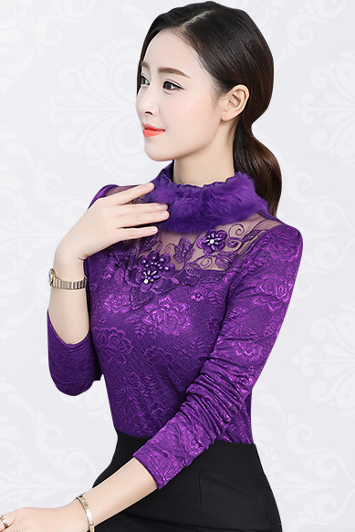 - Shopping Purple lace long sleeve top