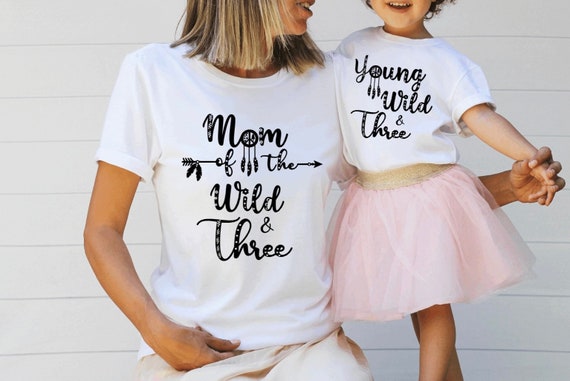 Young wild and three family shirts Clearance, Family Birthday Shirts Mom of Wild Clearance