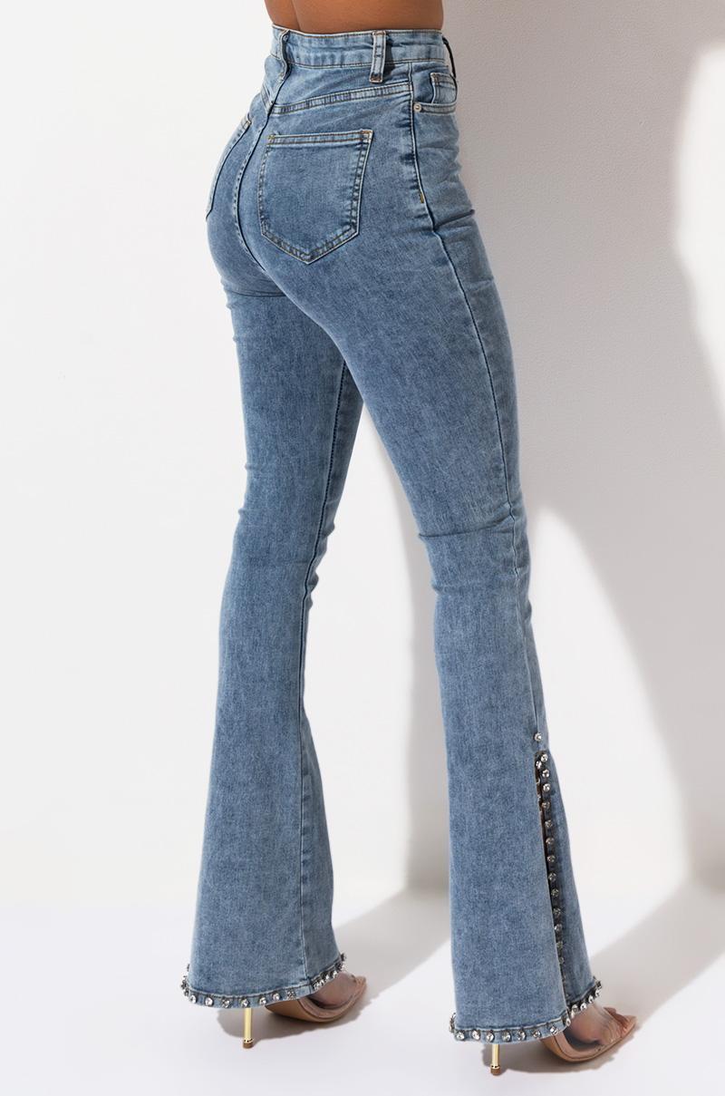 Rhinestone flare pants Clearance, HIGH WAISTED RHINESTONE FLARE JEANS Clearance