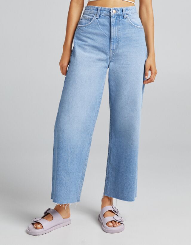 Bershka denim wide leg Clearance, Wide-leg cropped jeans - Denim - Woman Clearance