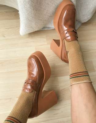 Loafer heels brown Clearance
