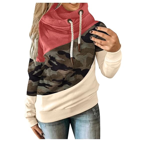5xl hooded sweatshirts Clearance, Hoodies for Women Color Block Cowl Neck Clearance
