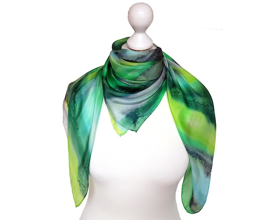 Green silk scarf Clearance, Green Silk Scarf for Mom hand painted Clearance