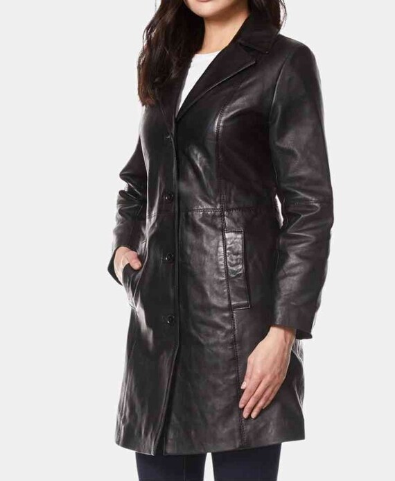 - Knee length leather coat womens sold