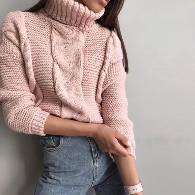 - High neck collar sweater free shipping