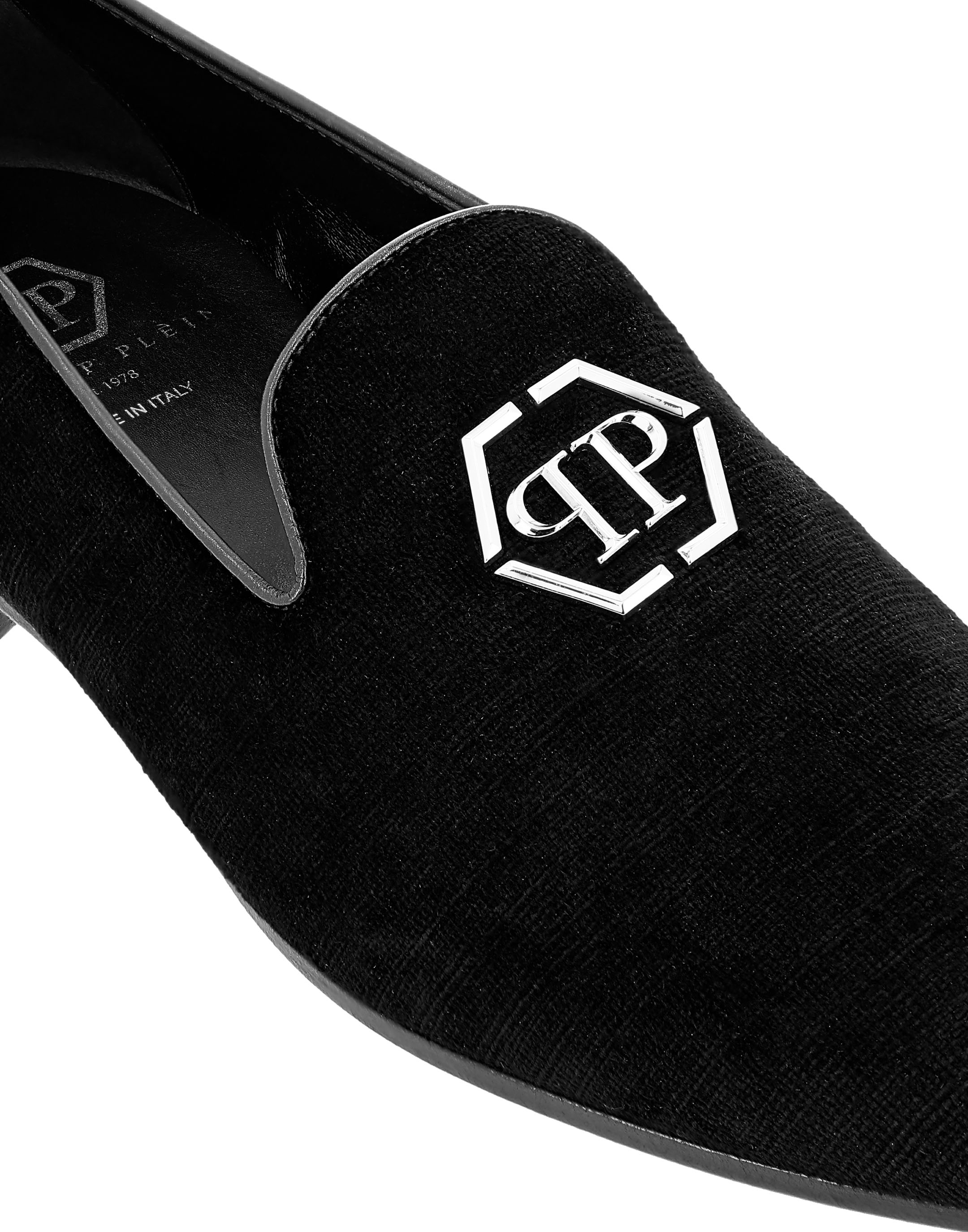 Philipp plein loafers Clearance, Velvet Loafers Embroidery Skull Clearance