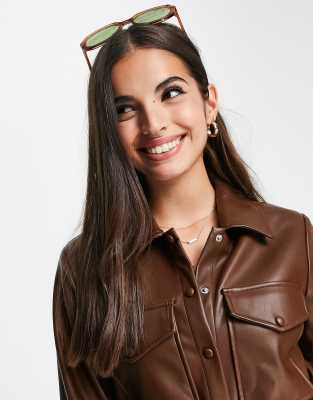 Brown leather overshirt Clearance, Pimkie faux leather belted overshirt in Clearance
