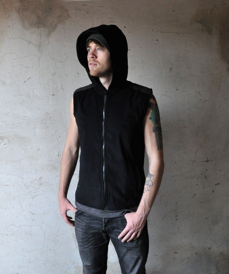 Black hoodie vest Clearance, Hoodie vest in black for men | Etsy Clearance