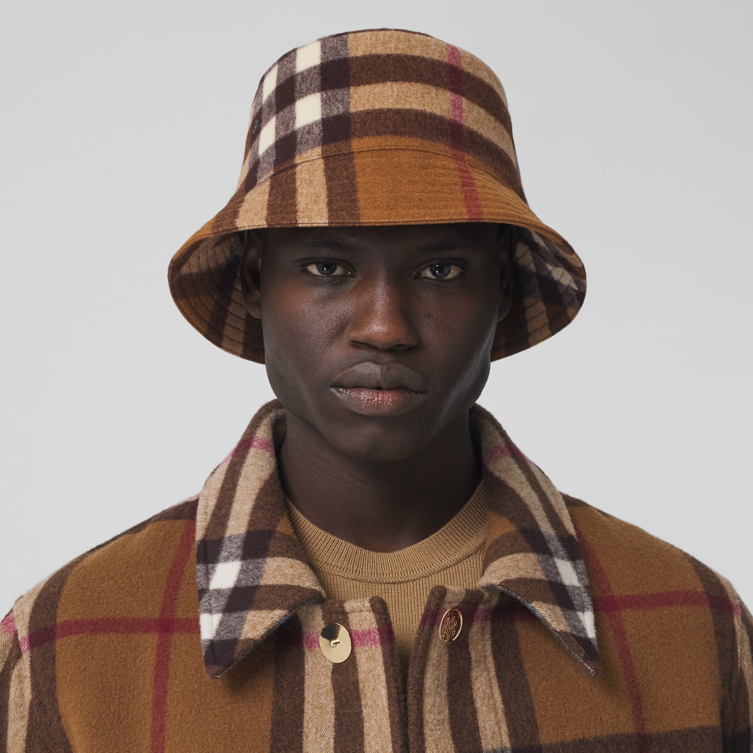 - Burberry check wool bucket hat outlet