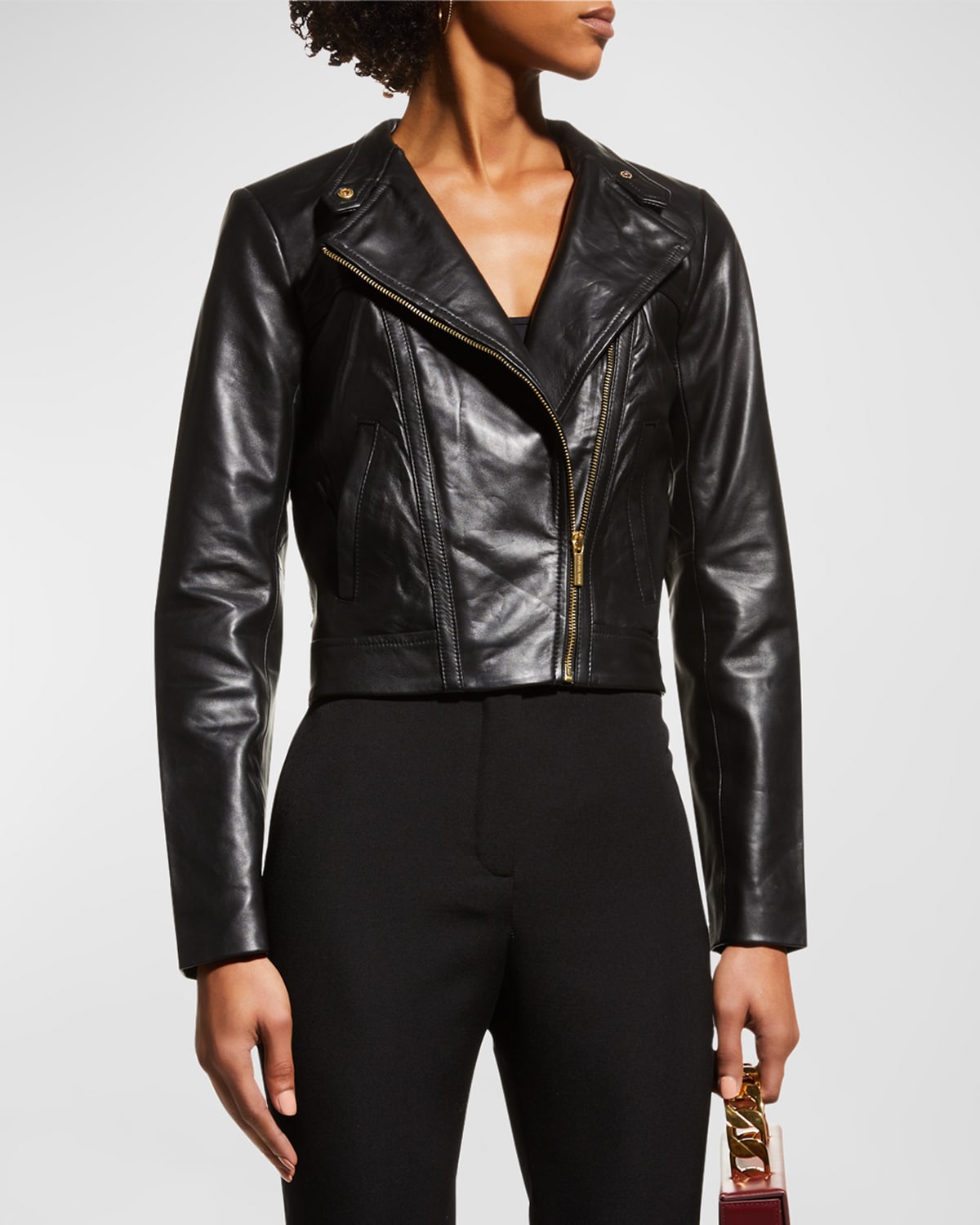 - Black leather moto jacket women's